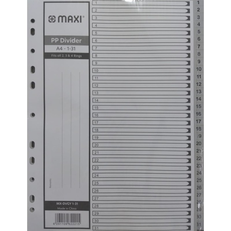 - Product Code: MAXI 1-31 GREY PP DIVIDER 1X15PX6B 15SET/PK