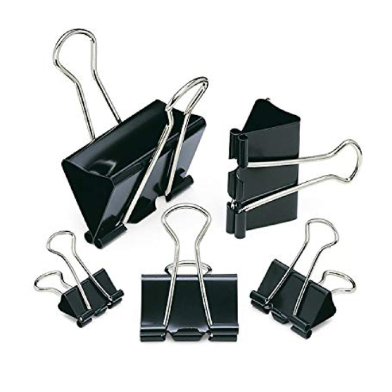 These binder clips are made of High-end Premium quality Iron, strong and durable. A tempered steel black binder clip with silver arms securely fasten stacks of paper and hold your paper documents tightly and leaves no marks of binding.